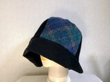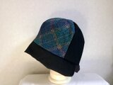 魅せる帽子☆ふんわり暖か♪ウールラメニッのバイカラークロッシュ~ブラック&格子柄