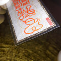 ①保護紙を静かに剥がし、霊符の神気を解き放つ。