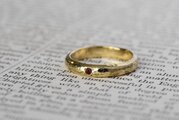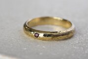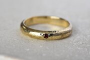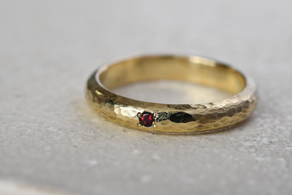 真鍮で制作を行った甲丸リングにガーネットを留めて制作を行ったリングになります。