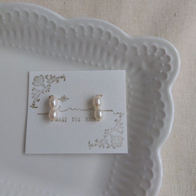 【人気】14kgf 2粒淡水ポテトパールの小さいピアス