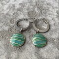 レトロなグリーンのエナメルチャームが揺らめくUSAヴィンテージピアス。チャームは取り外し可能で、シンプルなフープピアスとしてもお使いいただけます。