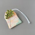 素敵なお守り袋が2つ届きました。 絞りの生地の色合いと大輪の花がとても華やかでキュートです。 白梅のものは、奥ゆかしさと気品を感じました。 どちらも大変気に入りました。大切に使わせていただきます♪