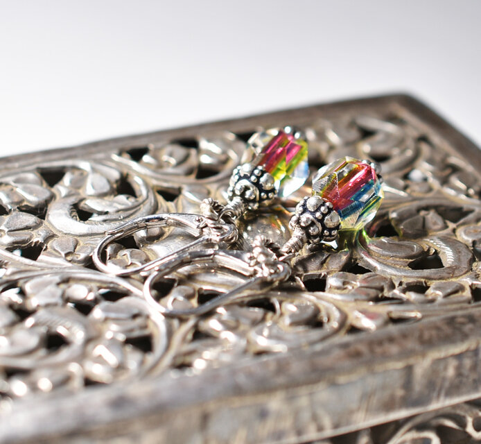 カットが美しいヴィンテージビーズとシルバービーズのピアス