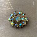 オーロラ色のビジューが輝くレトロ可愛いUSAヴィンテージブローチ。身につけやすいサイズ感で、ジャケットやストール等のアクセントにおすすめです。