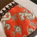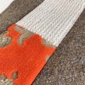 オレンジの布はソファなどに使う立体的な金華山織で暖かい風合いと柔らかな手触りが魅力です。