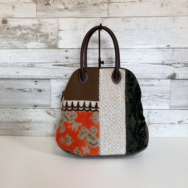 小さなボストンバッグ ハンドバッグ オレンジの金華山織