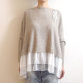 肌触りの良い柔らかなニットに繊細なドット柄チュールのフリルを重ね