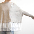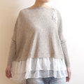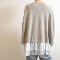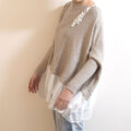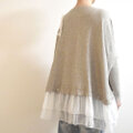 ふんわりドットチュール×ソフトニットのワイドチュニック(サンドベージュ)(受注制作)