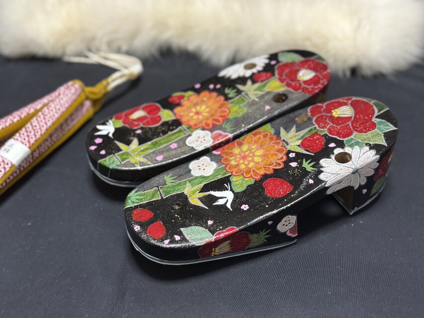 優美な手描き花文様が彩る 高級和履物 - 格式高い装いに。