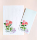 ふんわりと優しい珊瑚色のバラのレターセットです。