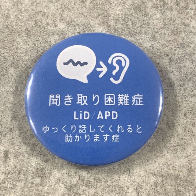 聞き取り困難症(LiD/APD)サポート缶バッジ(ブルー)