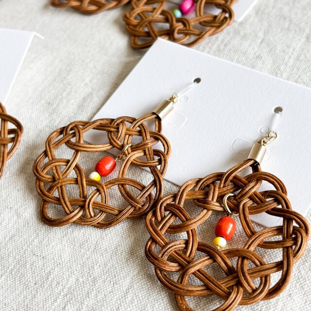 「袈裟結び」という結びをラタンで結んだ耳飾りです。