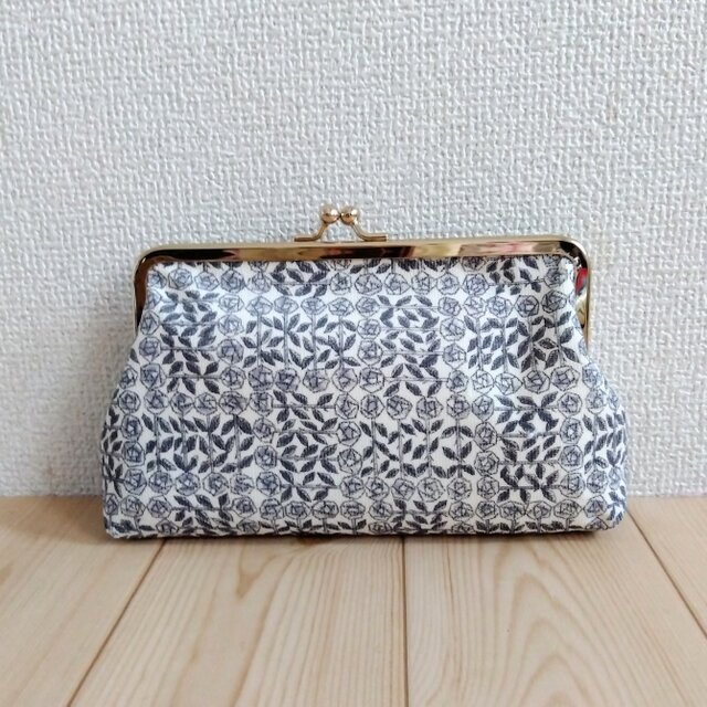リバティ お薬手帳・通帳ケース・がま口大きめポーチ 17cm口金 スリーピングローズ グレー 554