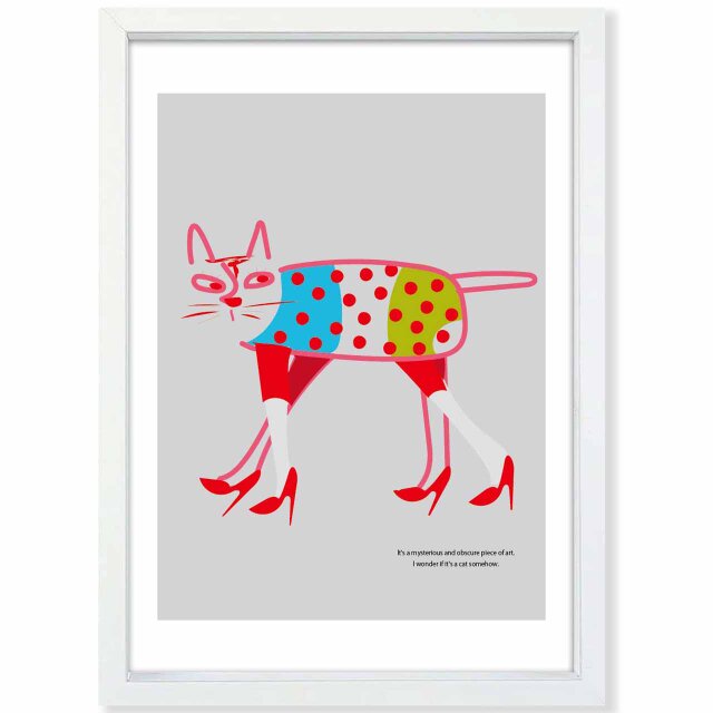 どこか憎めない服を着たアートキャット シンプルでモダンな色彩のインパクトポスター。