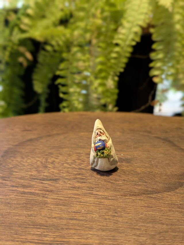 小さなサンタさんを招きネコさんと共にお迎えできました。小さな籠も一緒とに購入出来ました。2つ並べると童話の世界の様で感動しています。封筒にも箱にも留め具にも封にも手書きの絵が描かれて お手紙もそえられていました。素敵な世界観に包まれています。めぐり逢えて良かったです。ありがとうございました。