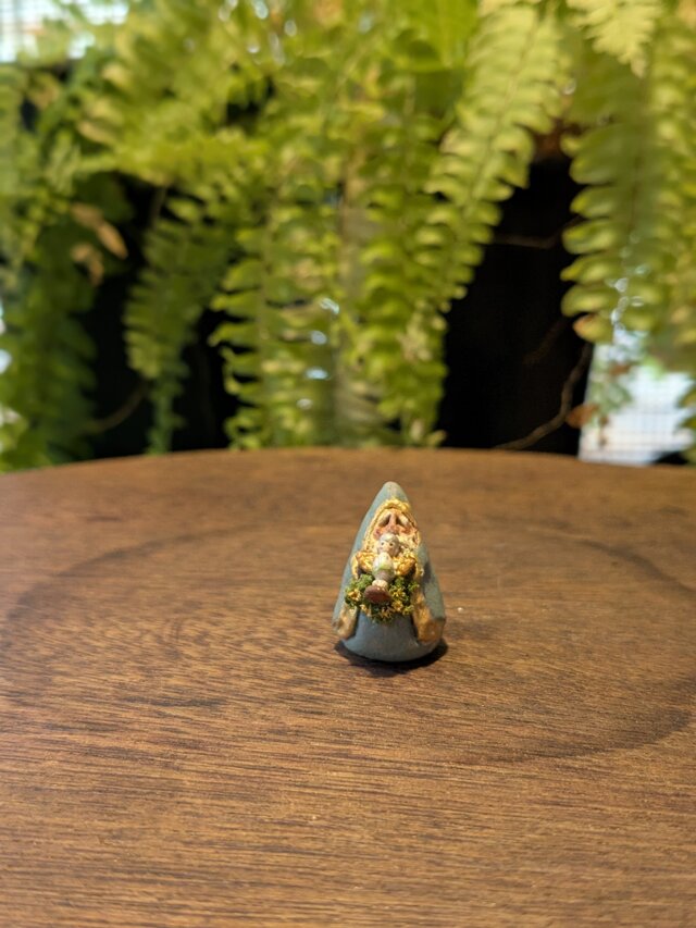 小さなサンタさんを招きネコさんと共にお迎えできました。小さな籠も一緒とに購入出来ました。2つ並べると童話の世界の様で感動しています。封筒にも箱にも留め具にも封にも手書きの絵が描かれて お手紙もそえられていました。素敵な世界観に包まれています。めぐり逢えて良かったです。ありがとうございました。