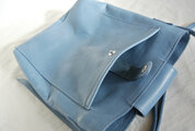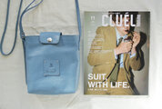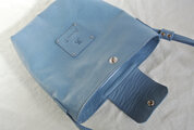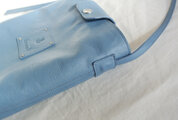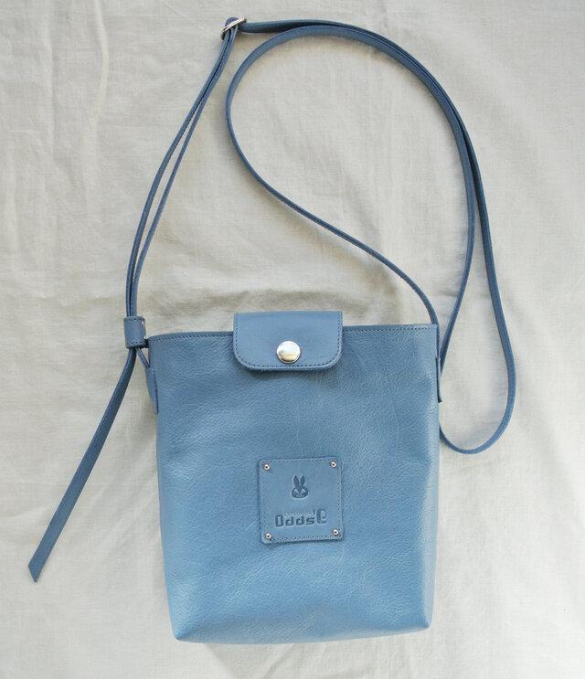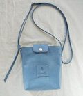 柔らかな薄いブルー(サックス)の牛革で作ったポシェットです!!