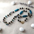 ブルーゴールドストーンとシェルのネックレス(N1332)