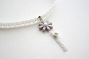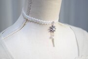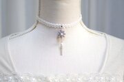 中心の花芯とコットンパールの光沢のある輝きが上品なチョーカー。