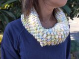 超極太毛糸のシンプルで暖かいショートマフラーです。