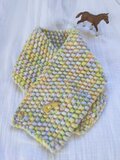 木調のトグルボタンでデティールをプラスし、洗濯も簡単にできます。