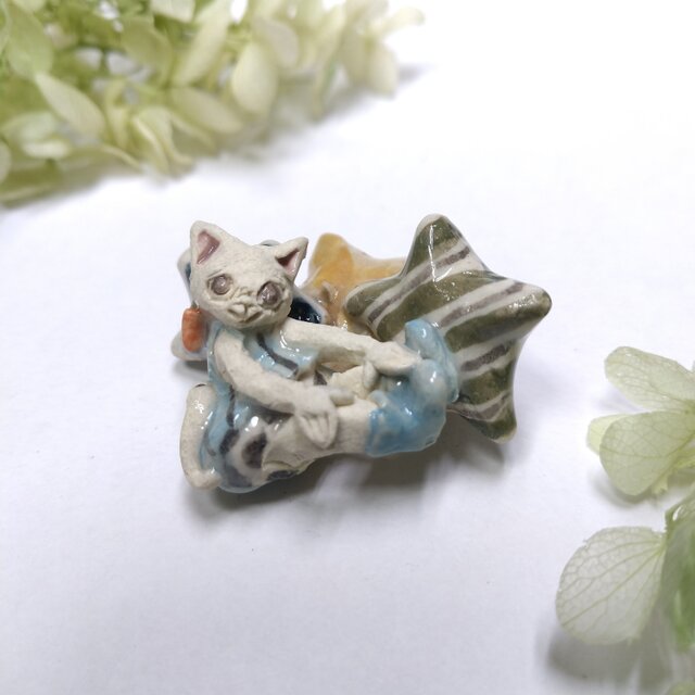 星や衣装の一部分に薄く透明釉を施しているので、その部分は少し光沢があります。