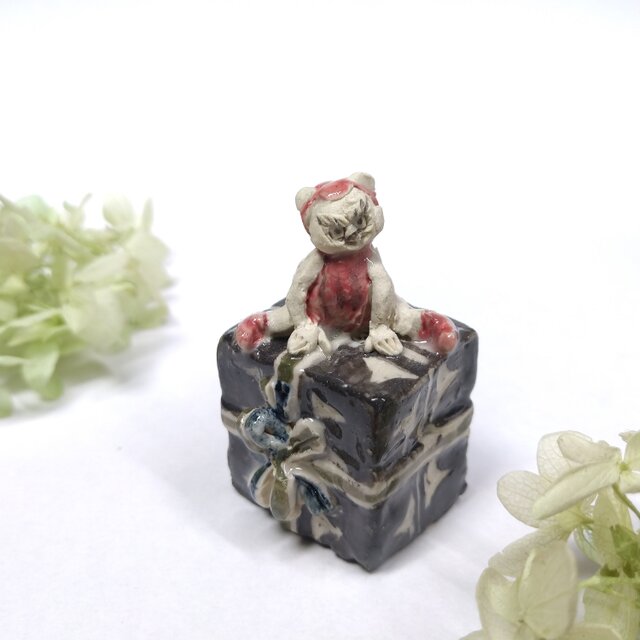 プレゼントと身体の一部分に薄く透明釉を施しているので、その部分は少し光沢があります。