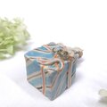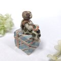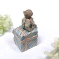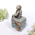 小さなプレゼントの上にちび天使がちょこんと座ってリボンを結んでいます。