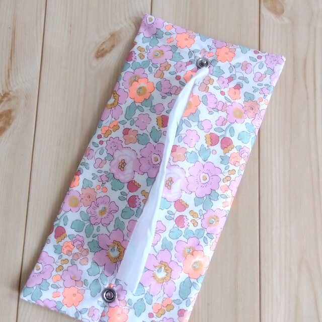 リバティプリントのタナローン生地を使用して製作した、携帯用のティッシュケースです。
