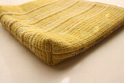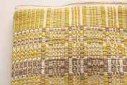 コットンのたて糸は細い番手を利用し、細やかで繊細な柄を表現しています。ベースカラーのイエロー、差し色の薄いブラウンに見える部分は各々2色引き合わせて使っていて、奥行きのある布地になっています。