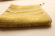 スウェーデン製の糸で手織りし、大き目のポーチに仕立てました。