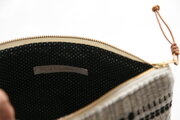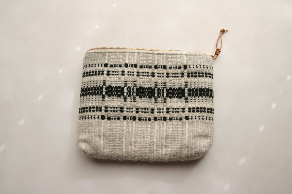 スウェーデン製の糸で手織りし、大き目のポーチに仕立てました。