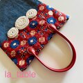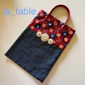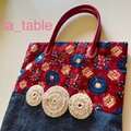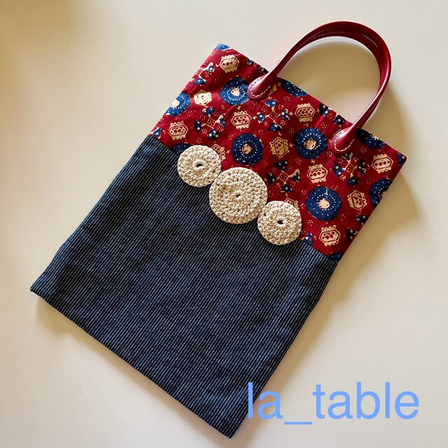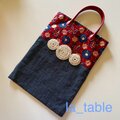 デッドストックのバティックと麻デニムでブックバッグを作りました。