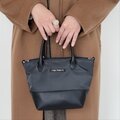 普段使い◎超軽量ナイロンレザーハンドバッグ トート 皮 革 2way ミニ 小ぶり ブラック黒 通勤 お仕事