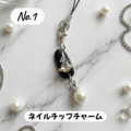 ネイルチップチャーム ブラック 惑星 宇宙 ゴシック パール ストラップ ハンドメイド 現品一点物