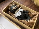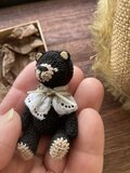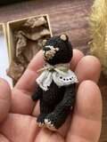 【5ジョイント】小さな本格テディベア 6cm * 極細糸のマイクロクロッシェ(黒クマさん)