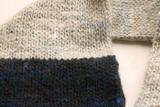 毛刈りしたままの原毛を取り寄せ、洗い、染めを行って手紡ぎした糸を使ってネックウォーマーを編みました。
