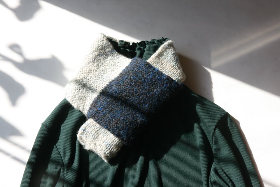 先日購入させて頂いたお品、程よく立ち上がってくれて首にフィットして使い心地もよく、自転車通勤の際に大活躍してくれています。 お色違いのこちらは種類の違う羊毛ということで、その違いも楽しませて頂きますね。こちらのお品もとても素敵です。 ありがとうございました。