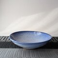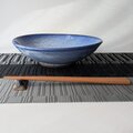 やわらかな藍色のグラデーションと、釉薬が生み出す繊細な表情が印象的な深皿です。