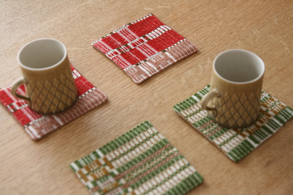スウェーデン製の糸で手織りし、コースターに仕立てました。
