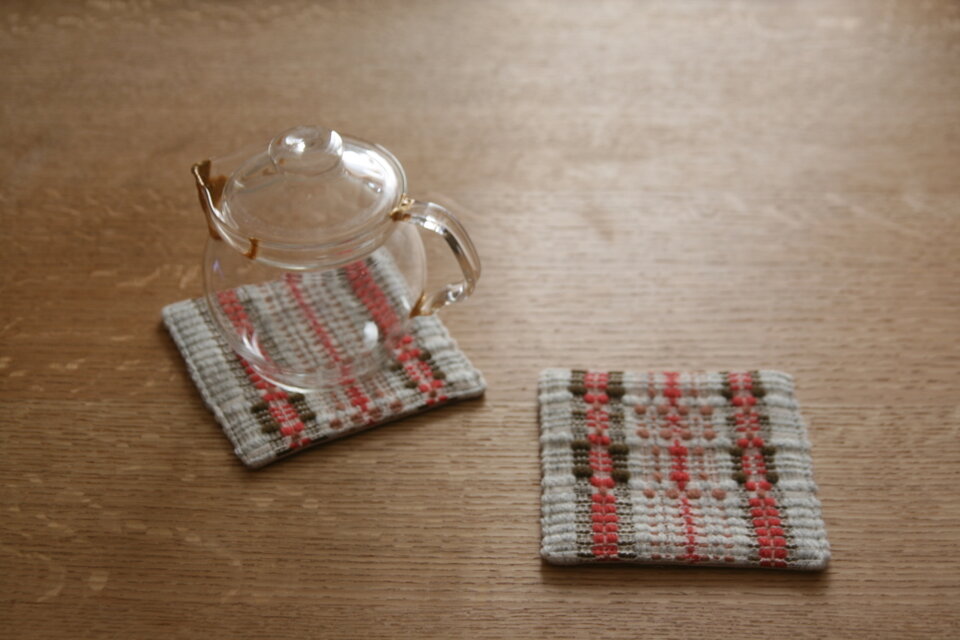 スウェーデン製の糸で手織りし、コースターに仕立てました。