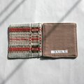 コットンのたて糸は細い番手を利用し、細やかで繊細な柄を表現しています。ベースカラーのイエロー、差し色の薄いブラウンに見える部分は各々2色引き合わせて使っていて、奥行きのある布地になっています。