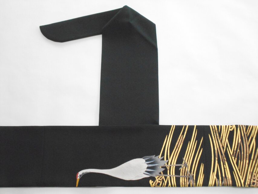浜ちりめんに京友禅で描かれた金彩を施した鶴の図案が魅力です。