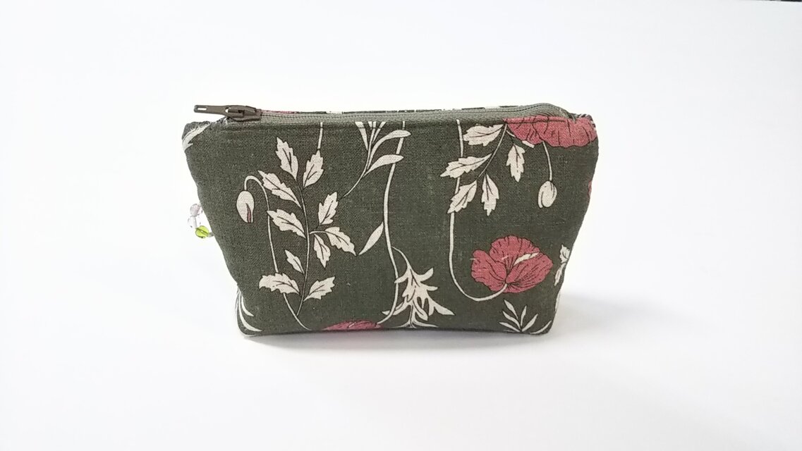 上質で、しなやかなリネンで作ったポピー柄のミニポーチです。