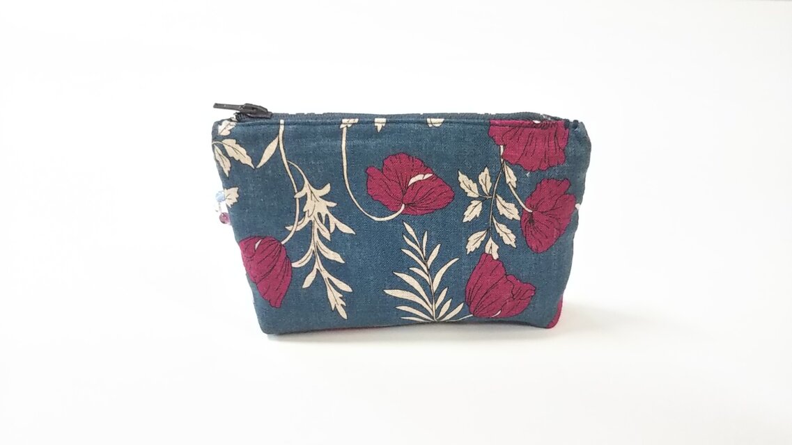 上質で、しなやかなリネンで作ったポピー柄のミニポーチです。