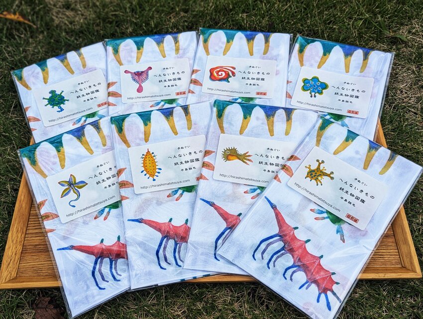 手ぬぐいになった造形作家・平島鉄也の水彩画「手ぬぐい 妖生物図鑑」が復刻しました!