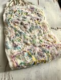 本体はメリノ羊毛を広げ、お湯と洗剤をかけてビニール手袋をつけて手で擦りフェルト化し、本体の生地を制作しています。