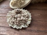 一般的なレース糸よりもさらに細い「刺繍糸1本(1本取り)」を、極細の編み針で丁寧に編み上げたマイクロクロッシェのブローチです。