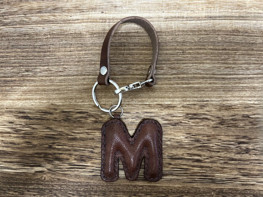 姫路レザーアルファベットぷっくりキーホルダー◆焦げ茶 M チャーム バックチャーム イニシャルキーホルダー