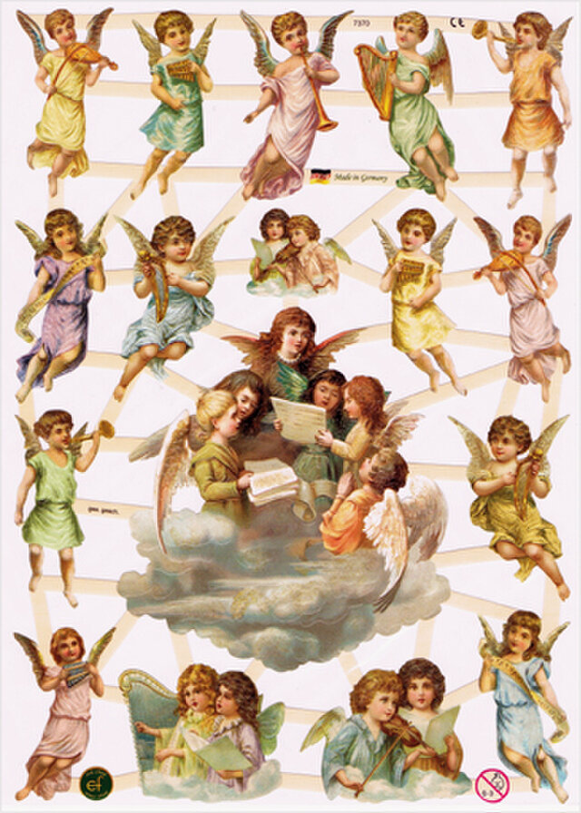 ドイツを中心に、イギリス、フランスなどヨーロッパ各国で今も変わらず愛されています。現地ではとてもポピュラーなペーパーアイテムで、手作りカードやお手紙に貼ったりするだけでなく、宝石箱や小さな家具などの装飾に使ったり、ジンジャーブレッドに添えてクリスマスツリーに飾ったりもします。
